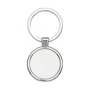 Um chaveiro minimalista feito em couro sintético, com frente e verso lisos e argola metálica.
