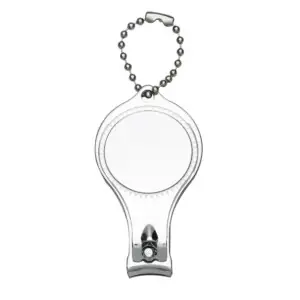 Chaveiro metal 3 em 1: abridor, cortador e lixa. Parte central circular ideal para gravações, detalhe de traços no contorno circular. Lado frontal com detalhes em relevo nas laterais e pequeno círculo acima do abridor. Para utilizar o cortador basta rotacionar a peça cirular e levantá-la. Acompanha correntinha.